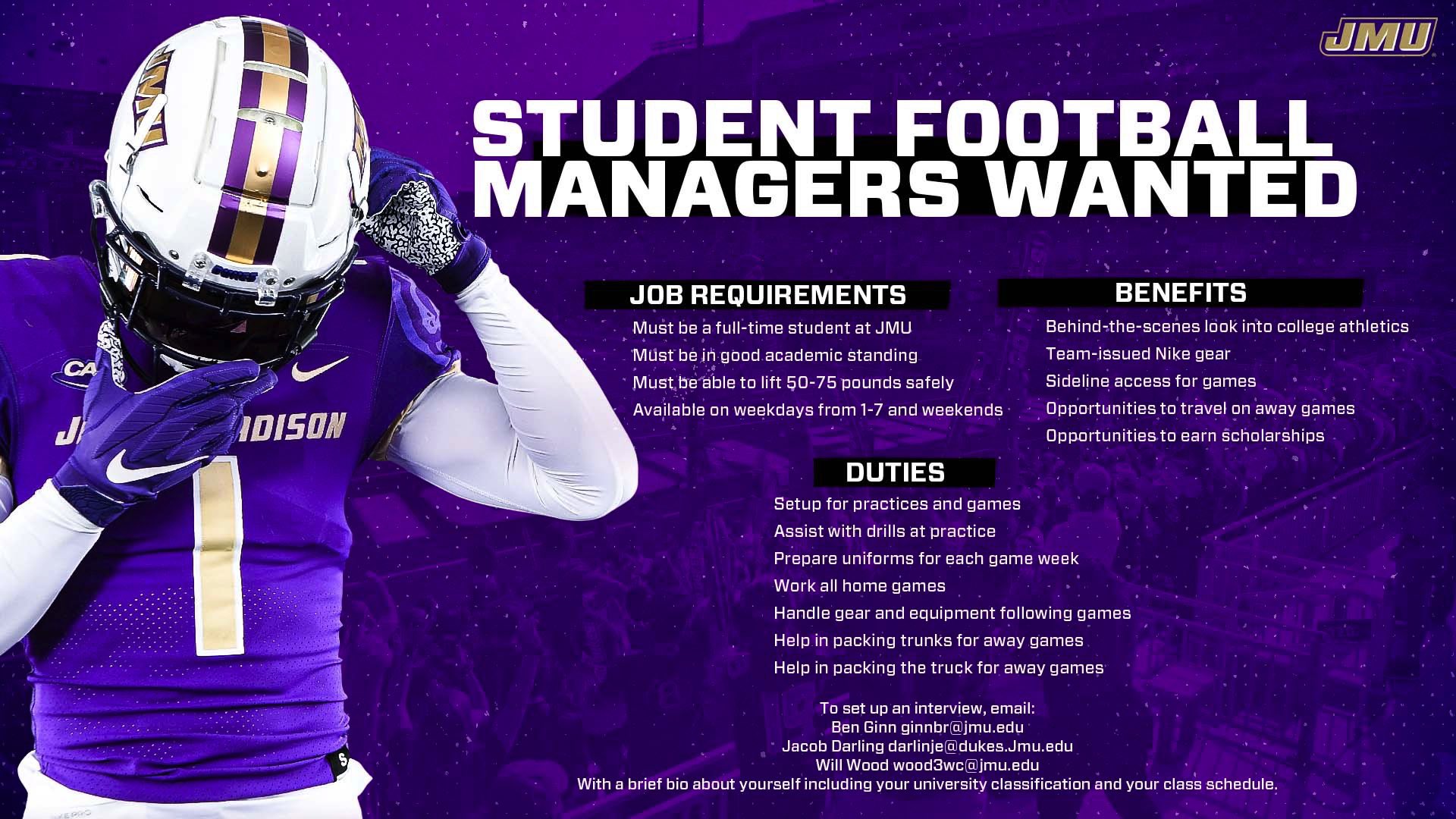 Hiring Student Equipment Managers Helmet Tracker