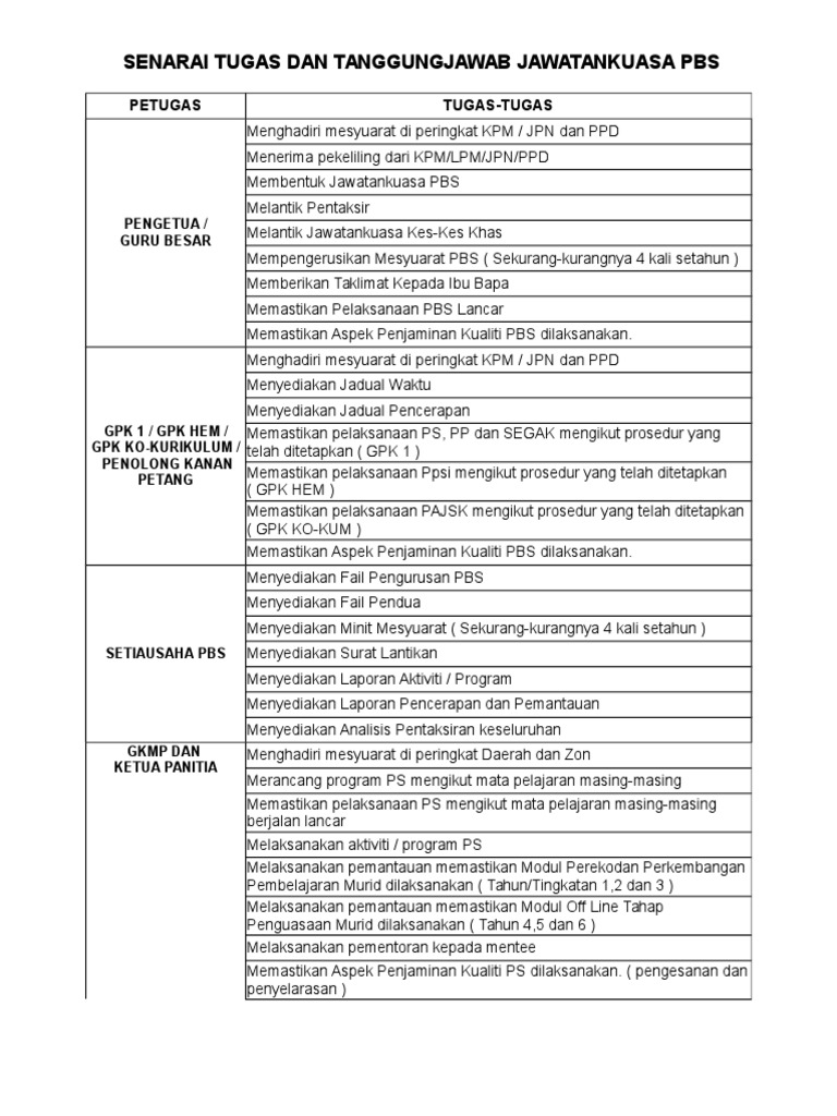 Senarai Tugas Dan Tanggungjawab Jawatankuasa Pbs 1 Pdf